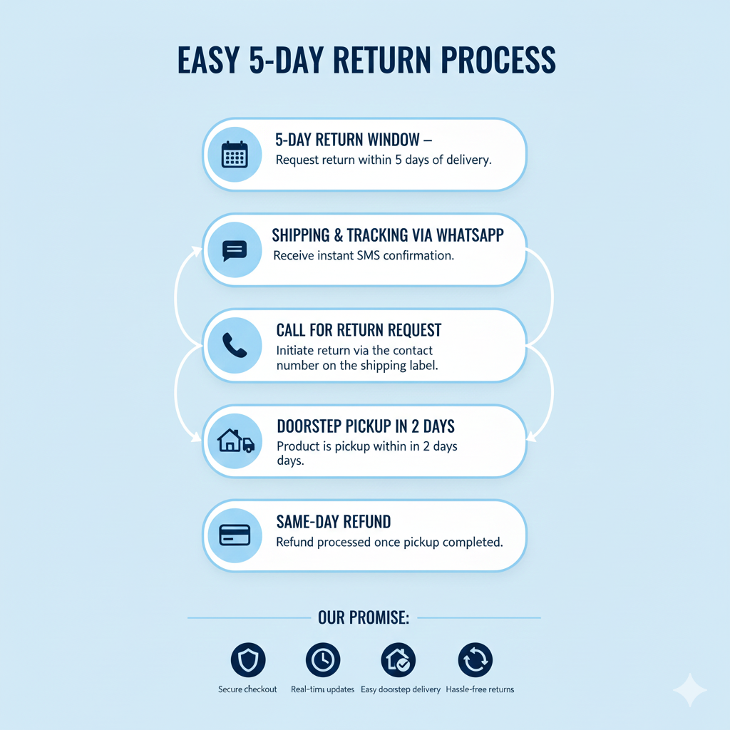 We believe shopping should be simple, reliable, and completely stress-free. That’s why we bring together a curated collection of quality products designed to add real value to your daily life—without unnecessary complexity or inflated pricing. Every item is selected with purpose and delivered right to your doorstep across India, ensuring a smooth and convenient shopping experience from start to finish.